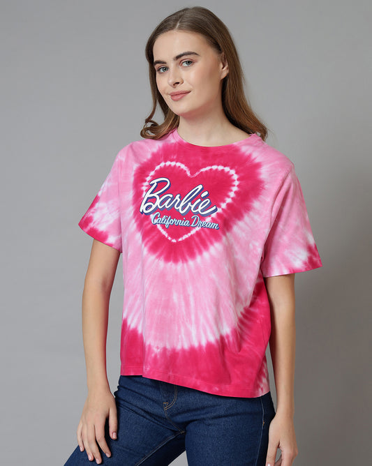 Barbie Relaxed Fit Round Neck Pink Tshirt For Women