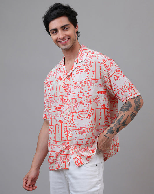 -15% OFF New ArrivalNaruto Anime Printed Regular Fit Rayon Beige Shirt For Men
