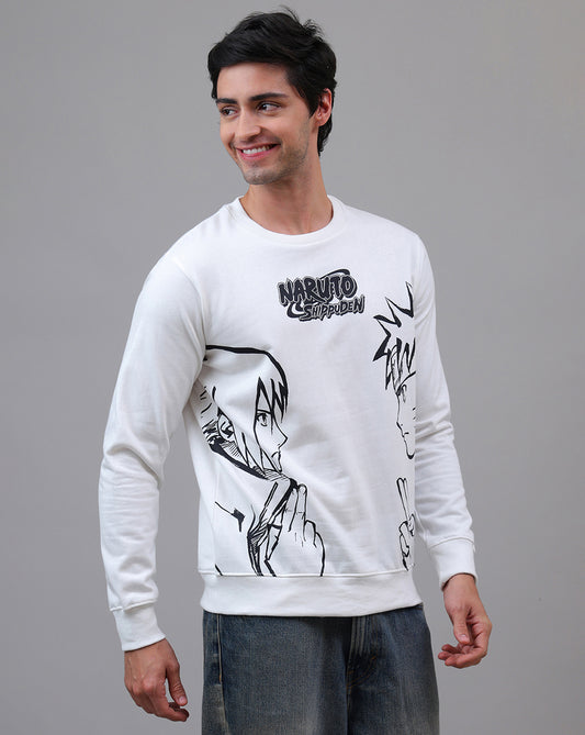 -15% OFF New ArrivalNaruto Anime Printed Regular Fit Off White Sweatshirt For Men