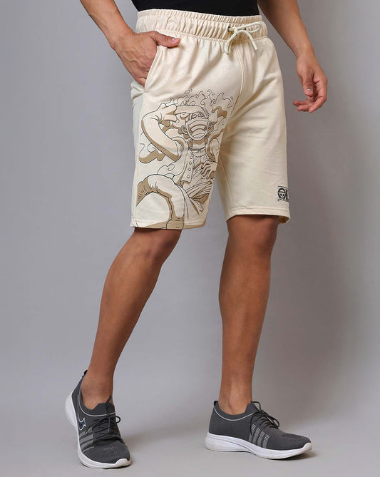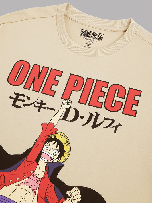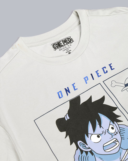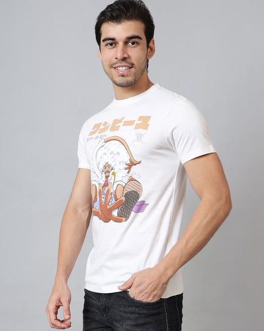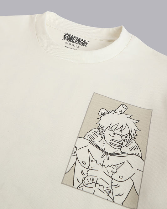 -15% OFF New ArrivalOne Piece: Luffy Anime Printed Pure Cotton Off White Regular Fit Tshirt For Men