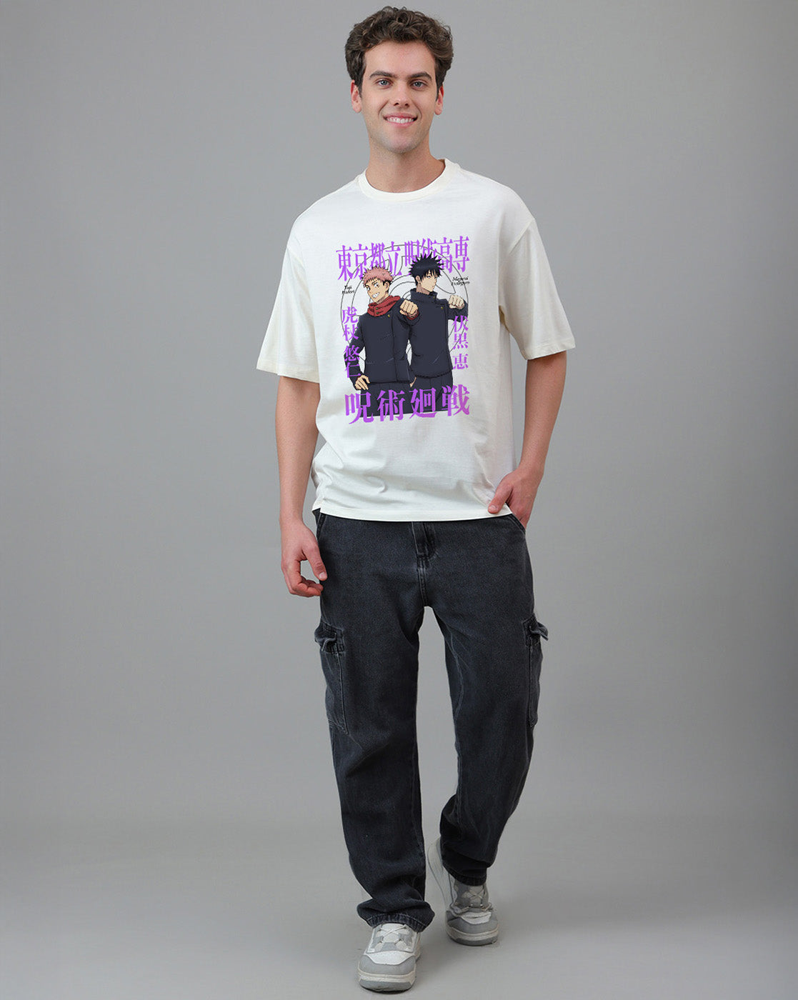 Jujutsu Kaisen Yuji Itadori & Megumi Fushiguro Printed Oversized Tshirt For Men